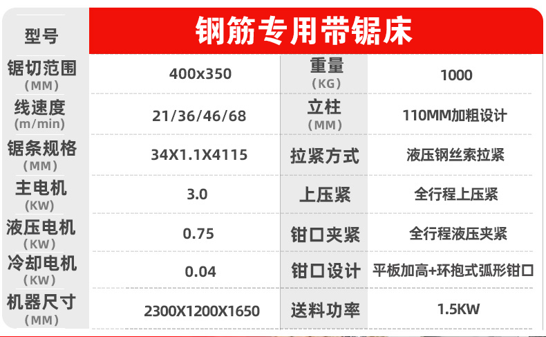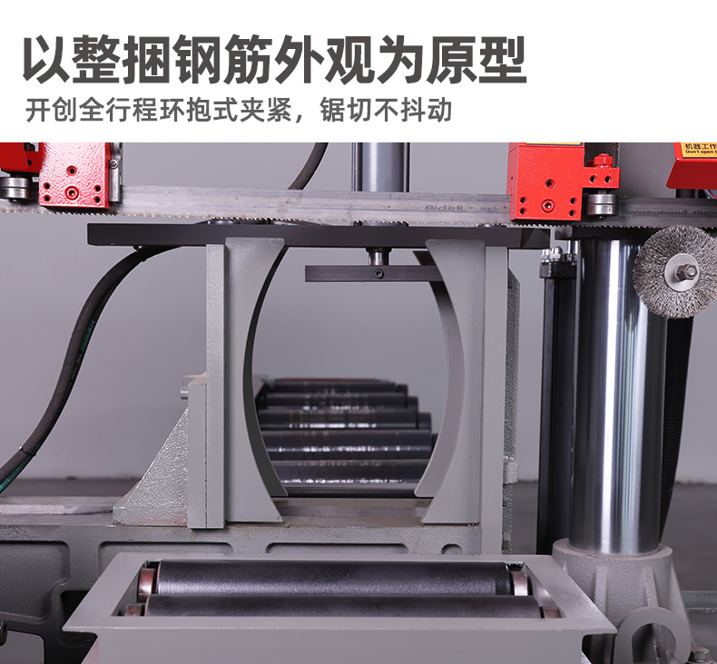 鋼筋專用帶鋸床是為了工地(dì)建築和鋼材市場設計(jì)一的地款專用鋸(jù)床,該鋸床可成捆鋸切,鋼絲繩自動打(dǎ)捆,加上兩邊(biān)半圓型夾(jiá)鉗(qián),再配上全行程下(xià)壓裝置,可一次性切割直徑300左右的成捆(kǔn)鋼(gāng)筋,該鋸床切割效率快,切(qiē)口平整,是一款您必不(bú)可少的切割(gē)神器。